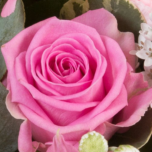 Our most popular bouquet, a collection of blooms in shades of pink and cream, hand-tied and finished with a complementary wrap.