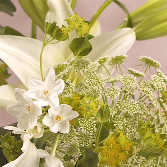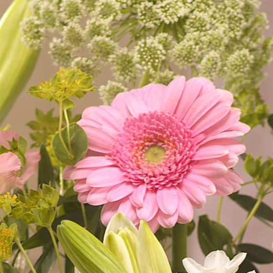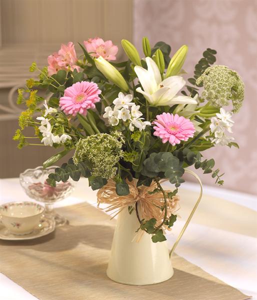 This country garden design comes complete in a jug with lovely Lilies, Ammi Majus, Gerbera, Alstroemeria and fragrant Narcissi.
