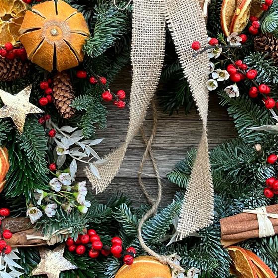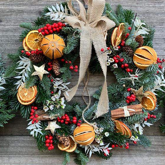 A beautiful welcoming ring to adorn your door with the scents of Christmas