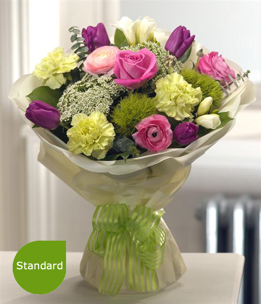 Please note that due to the seasonal availability of flowers it may be necessary to vary individual stems from those shown. Our skilled florists may substitute flowers for one similar in style, quality and value. Where our designs include a sundry item like a vase or basket it may not always be possible to include the exact item as displayed. If such an occasion arises we will make every effort to replace the item with a suitable alternative.