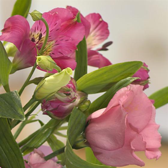 Soft and rich pink flowers featuring Roses, Carnations and Lisianthus beautifully presented for that special delivery.