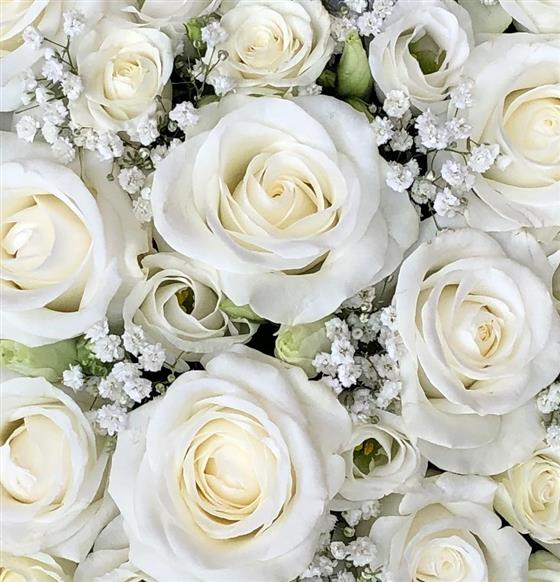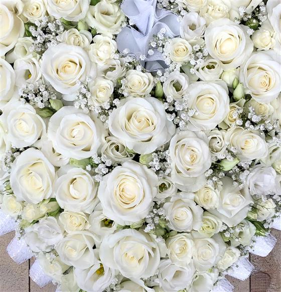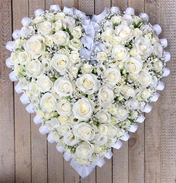 These beautiful white roses have been delicately arranged into this heart shaped tribute a token of true love.