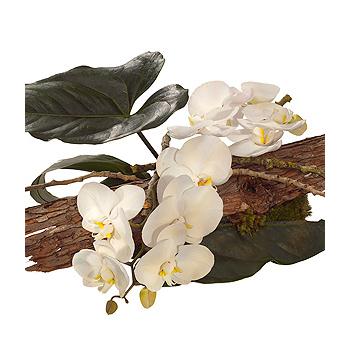 A stunning white Phalaenopsis Orchid arrangement with Anthurium and Aspidistra leaves.